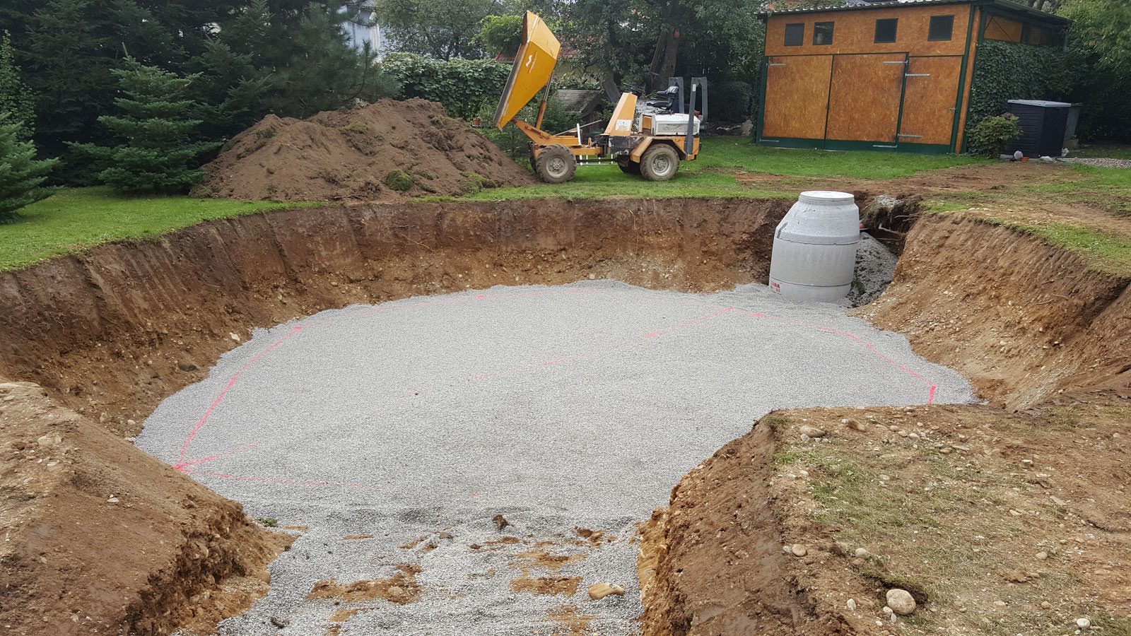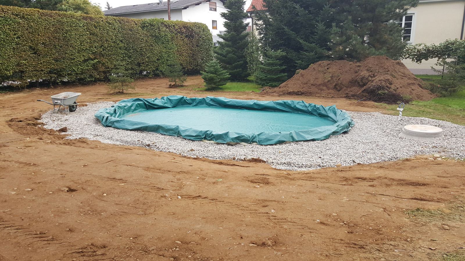 Wir bereiten Ihren Grund optimal auf den Bau Ihres Pools oder Teichs vor.